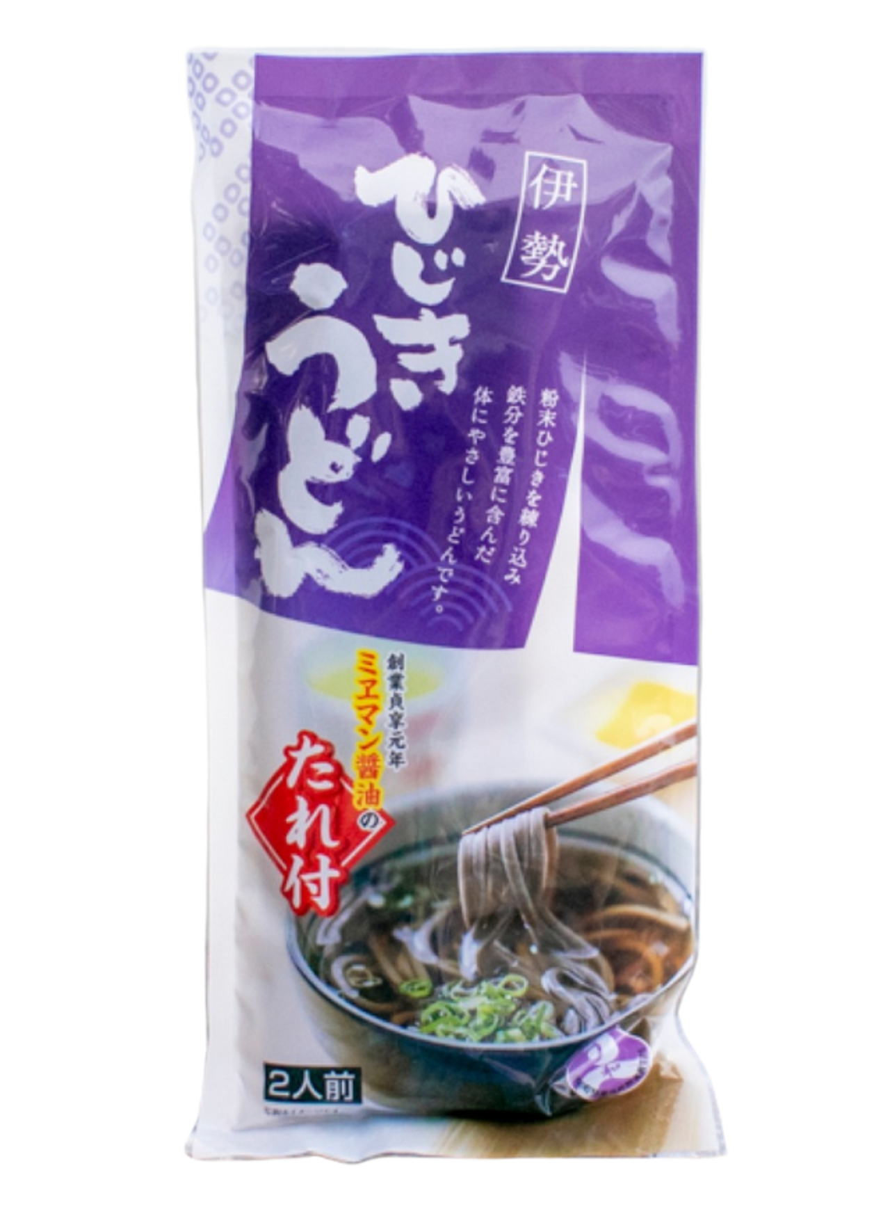 昭和25 年から70 年以上にわたり三重県明和町でひじきなどの海藻を加工・販売する辻丈蔵商店の良質なひじきを微粉末にし、麺に練り込んでいます。三重県桑名市で昭和6 年から麺作りと向き合う陣田屋商店がオリジナルに製麺するコシがある細めの麺で、ひじきの香ばしい風味をお楽しみいただけます。